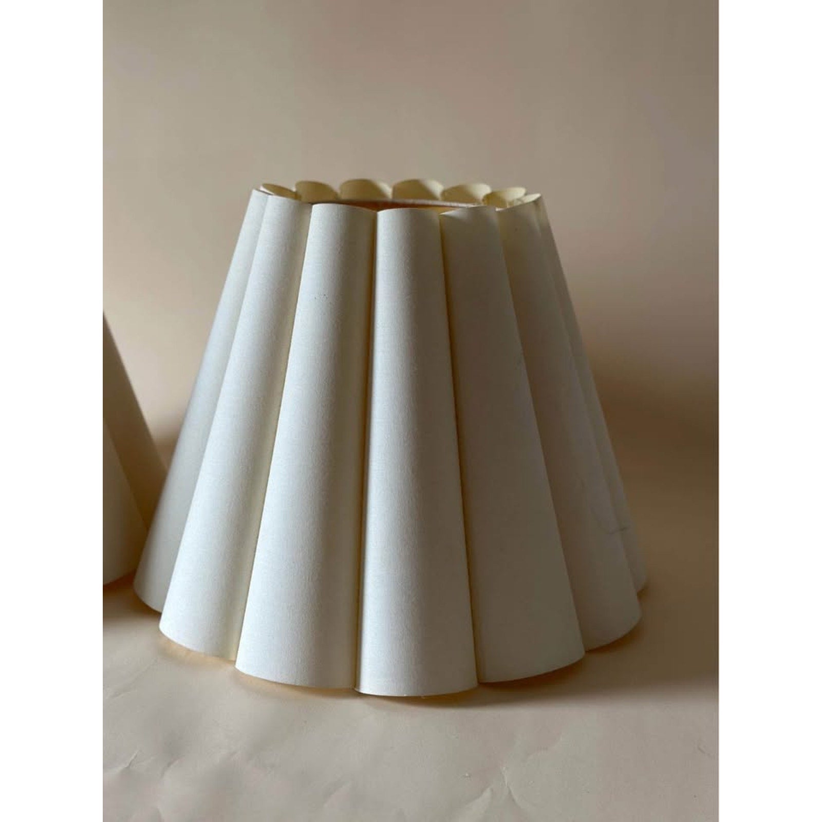 2 - Vintage Linen Hardback Scalloped Lampshades in Cream