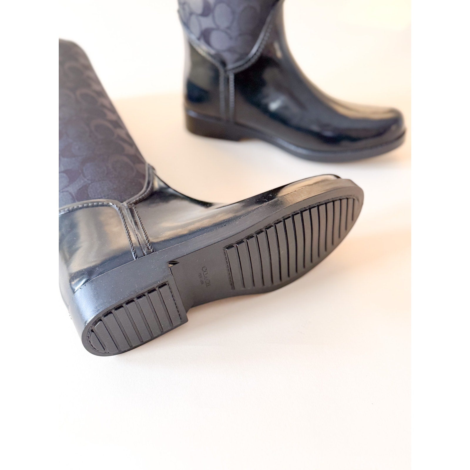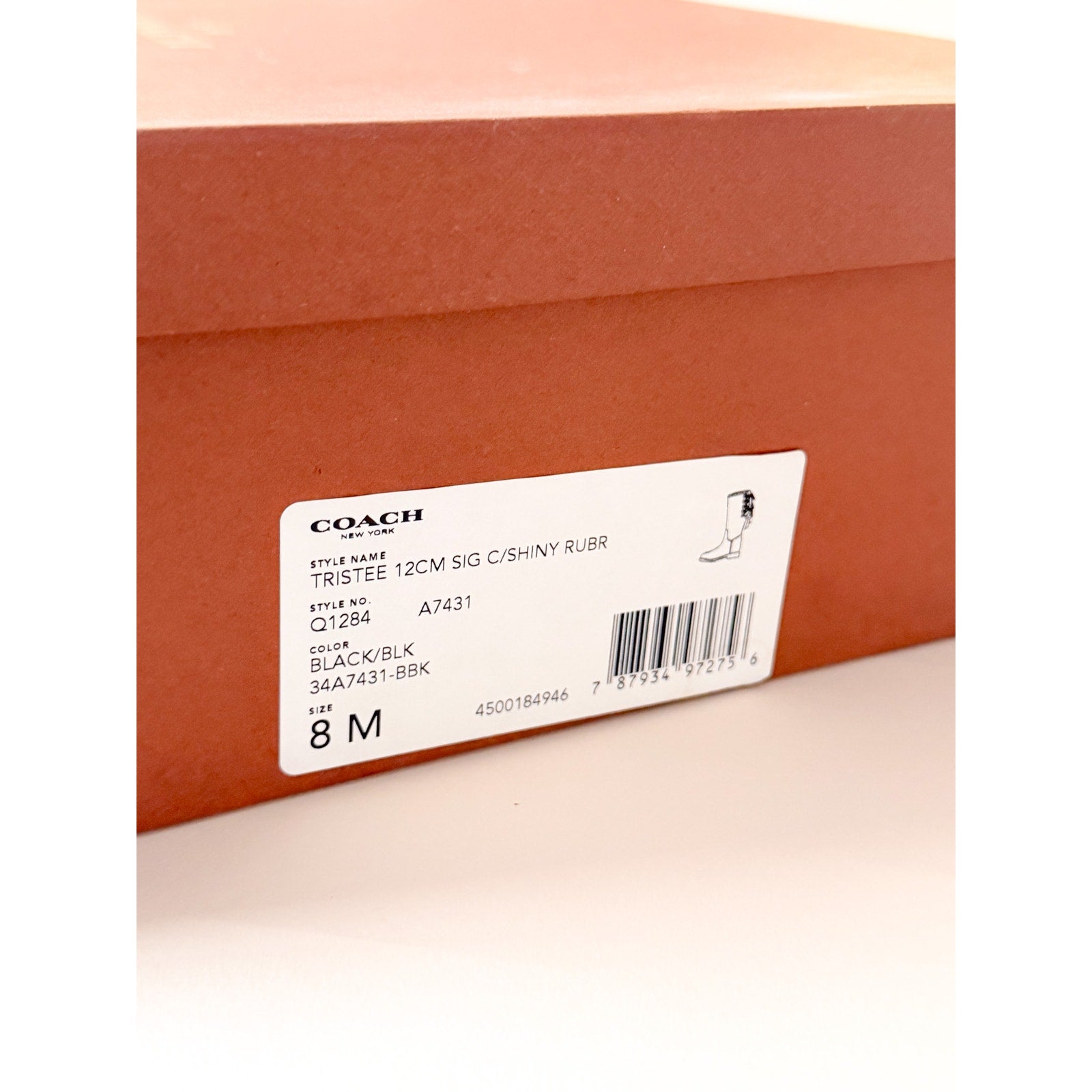 Step out in style with these brand new COACH Tristee rain boots! These boots are not only fashionable but also practical for keeping your feet dry on rainy days.