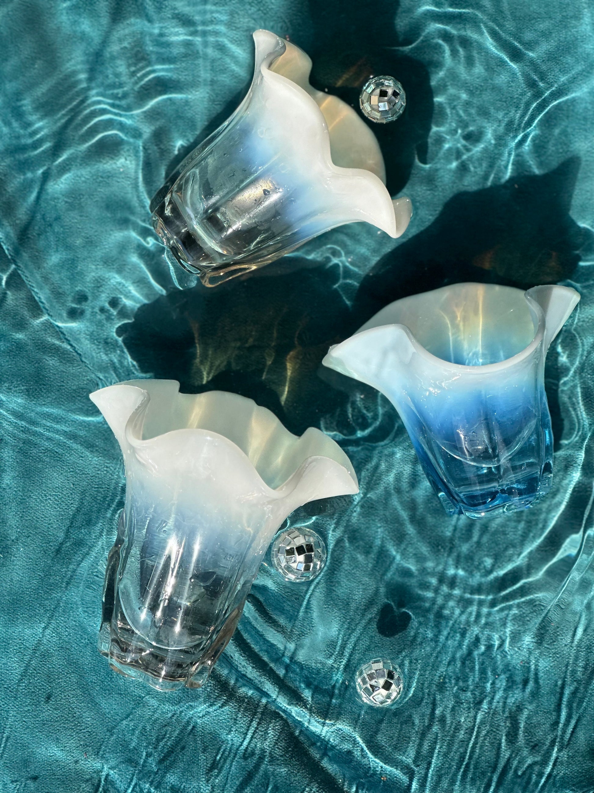 Vintage Duncan Miller Canterbury Blue Opalescent Fluted Ruffled 18oz Fill