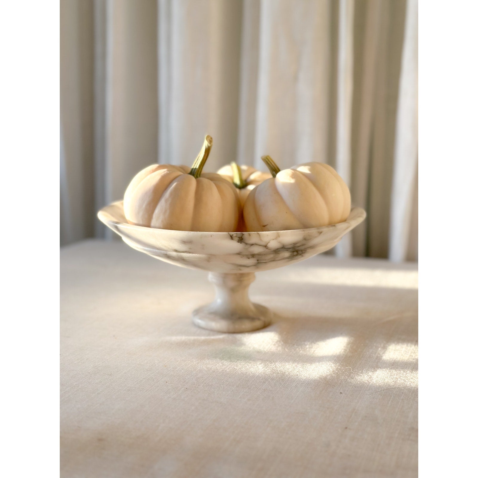 Add a touch of vintage elegance to your home with this beautiful alabaster compote bowl! This piece is perfect for displaying fruit, desserts, or as a standalone decorative item.