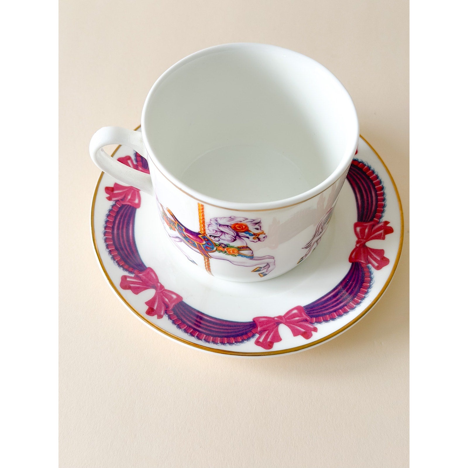 Vintage Carousel Horse Porcelain Coffee Tea Cup & Saucer