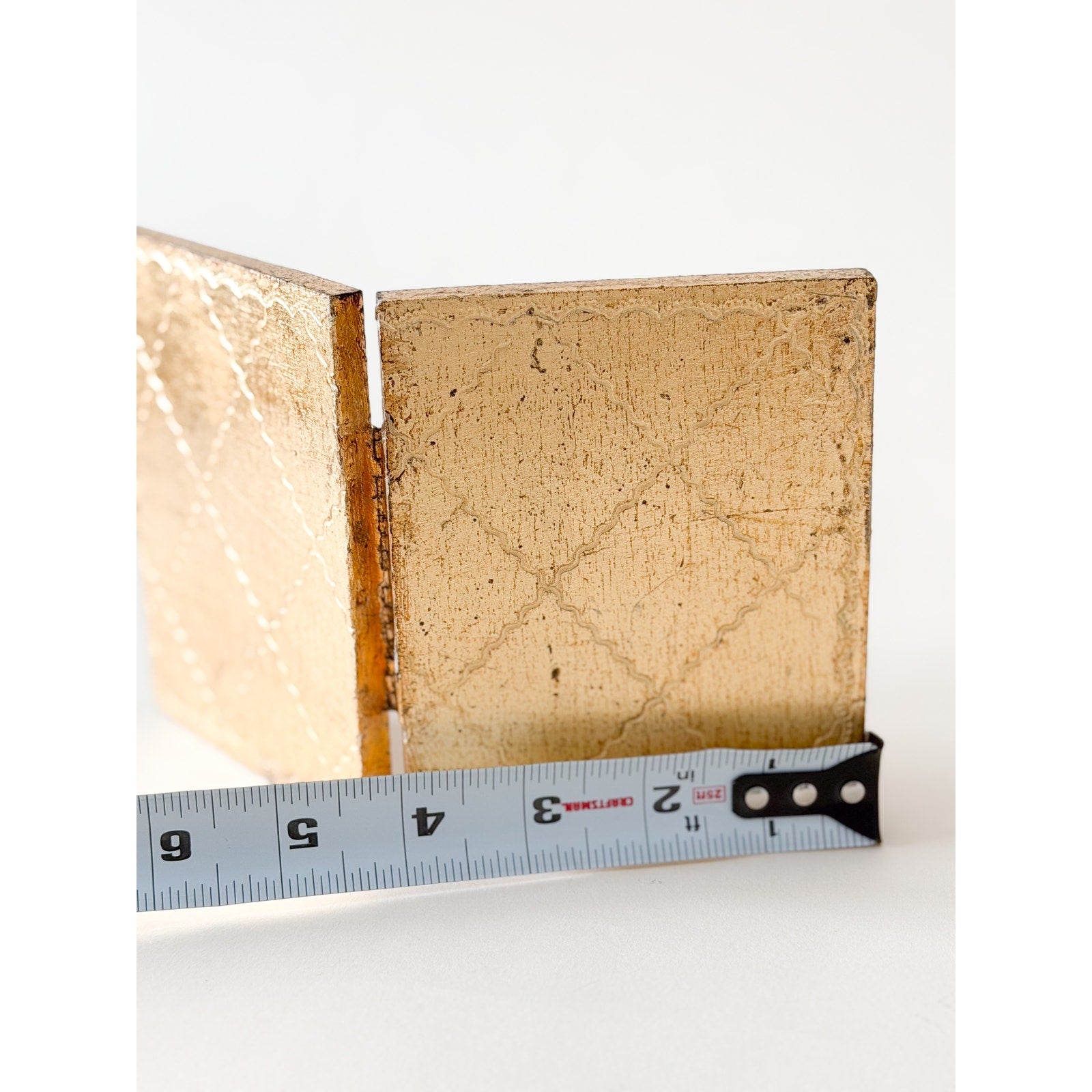 This is a beautiful vintage Italian Florentia giltwood painted Madonna icon bifold table screen. It's a unique piece that adds a touch of elegance and history to any room. The Madonna icon is exquisitely detailed, and the giltwood frame adds a touch of luxury.